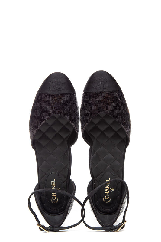 Chanel Black Sequin Mary Jane Ankle Strap Flats SZ 40