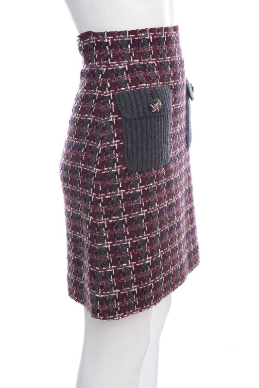 Chanel Burgundy Fantasy Tweed Skirt SZ 36