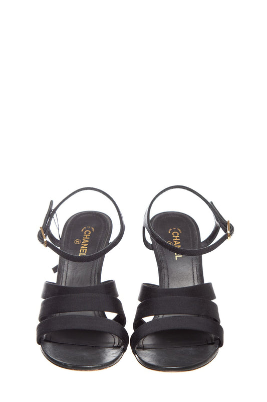 Chanel Black Satin and Gold Quilted Wedge SZ 37.5