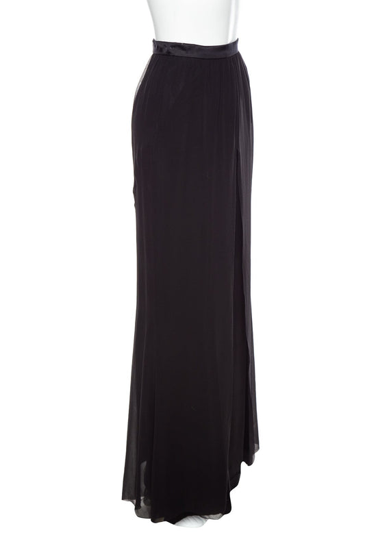 Chanel Black Wool and Lambskin Leather Skirt SZ 40