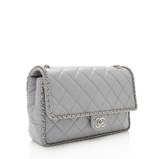 Chanel Crumpled Calfskin Running Chain Around Large Flap Bag (SHF-W3UmSX)