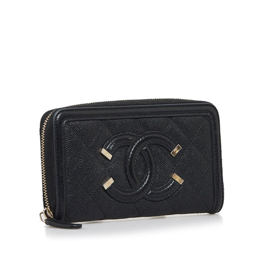 Chanel CC Caviar Filigree Zip Around Wallet (SHG-miZ2He)