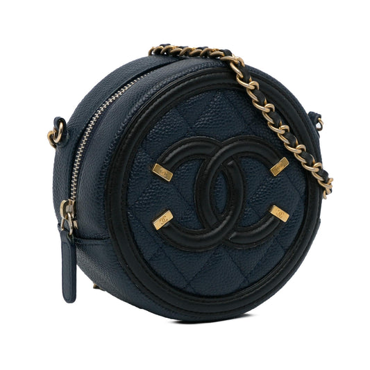 Chanel CC Filigree Caviar Round Crossbody Bag (SHG-iNuYvT)
