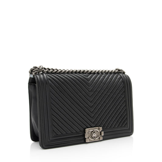 Chanel Chevron Wrinkled Lambskin New Medium Boy Bag (SHF-rjzaUj)