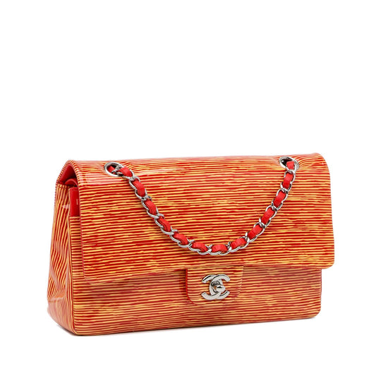 Chanel Medium Classic Striped Patent Double Flap (SHG-9oaXcP)