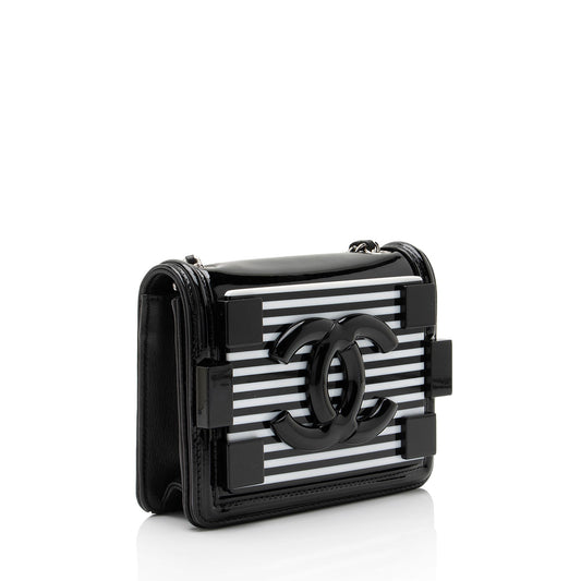 Chanel Patent Leather Striped Plexiglass Brick Boy Mini Flap Bag (SHF-0FlNDK)
