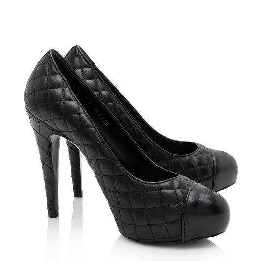 Chanel Quilted Leather CC Cap Toe Platform Pumps - Size 9.5 / 39.5 (SHF-5kGom3)