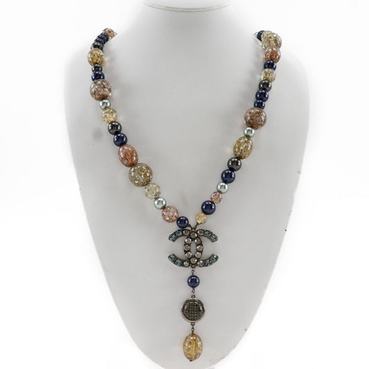 Chanel Coco Mark Necklace Metal Faux Pearl Rhinestone