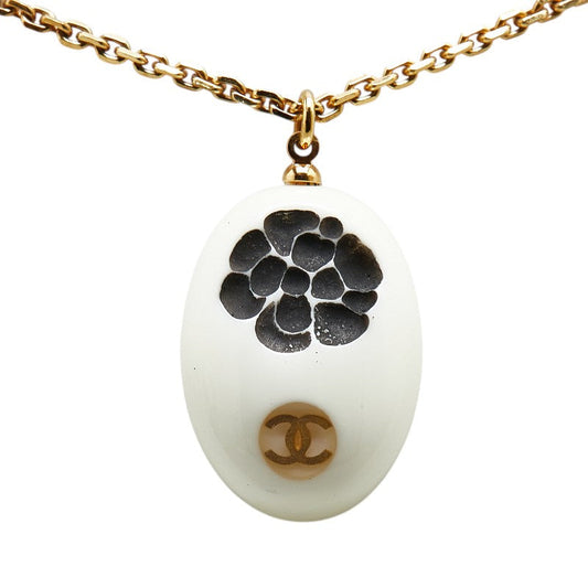 Chanel Camellia Coco Mark Necklace Gold White Black