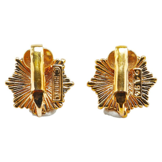 Chanel Vintage Coco Mark Pearl Clip Earrings