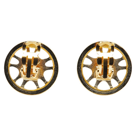 Chanel Matelasse Coco Mark Earrings Gold Black