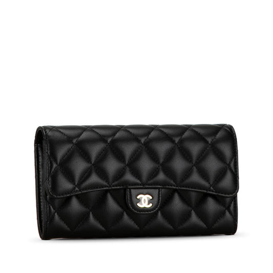 Chanel Classic Long Flap Wallet Black Lambskin AP0241