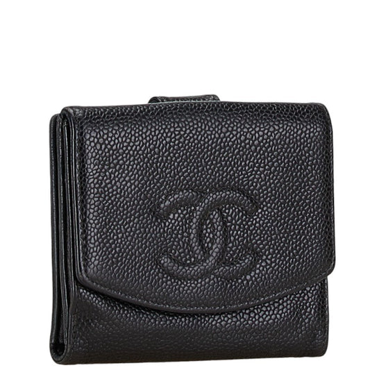 Chanel Caviar Skin Matelasse Coco Mark Classic Small Flap Wallet