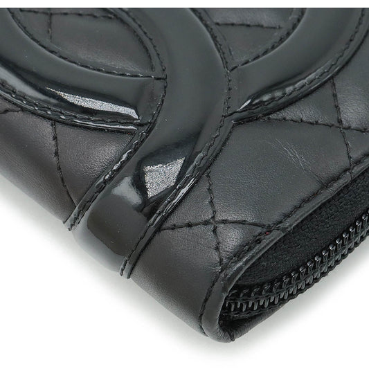 Chanel Patent Leather Round Zip Wallet Black