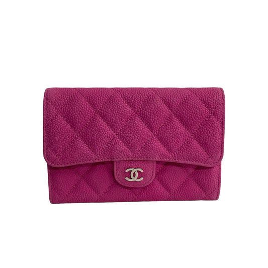 Chanel Caviar Skin Tri-Fold Mini Wallet Pink
