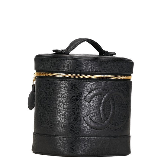 Chanel Caviar Skin Coco Mark Vanity Handbag Black Gold