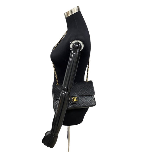 Chanel Matelasse Double Flap Chain Shoulder Bag Black Gold Lambskin