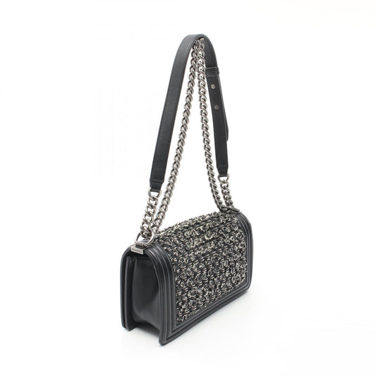 Chanel Medium Tweed & Leather Le Boy Flap Bag Leather Shoulder Bag in New Condition
