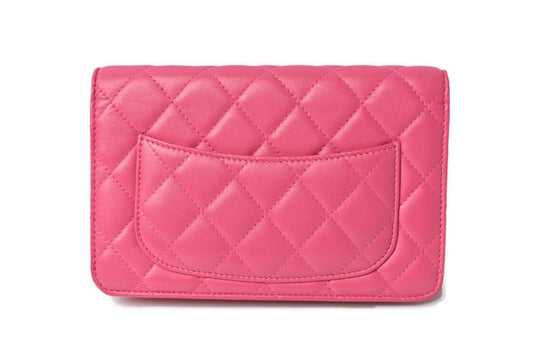 Chanel Lambskin Chain Wallet Shoulder Bag Pink Silver Hardware