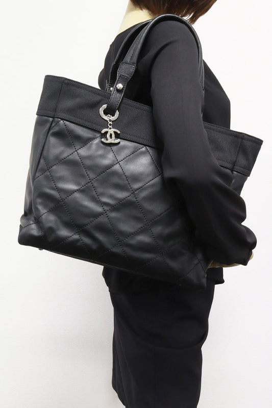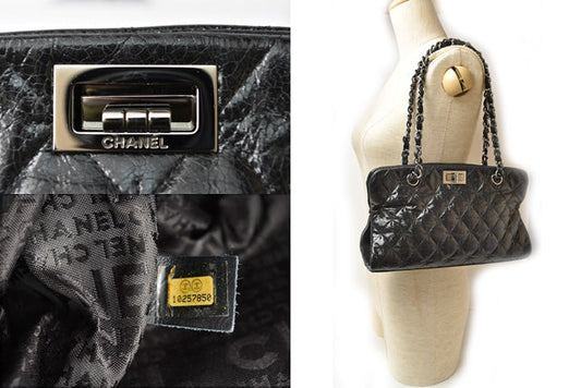 Chanel Patent Leather Tote Bag Vintage Quilted Black