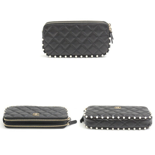 Chanel Matelasse Pearl Chain Wallet Shoulder Bag Black