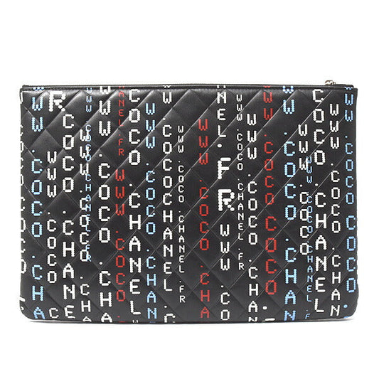Chanel Lambskin Typography Clutch Bag Black