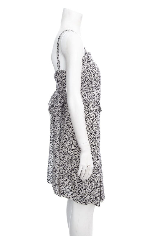 Chanel Black and White Graphic Print Silk Midi Skirt SZ 34