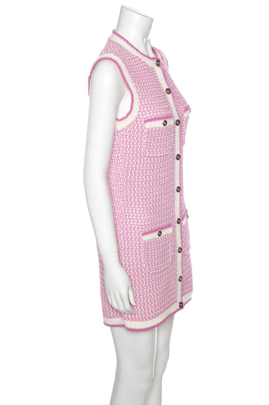 Chanel 2022 Pink Knit Sleeveless Mini Dress SZ 36