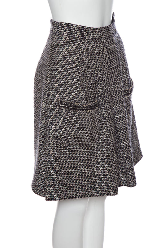 Chanel Black and Brown Tweed Flare Skirt SZ 36