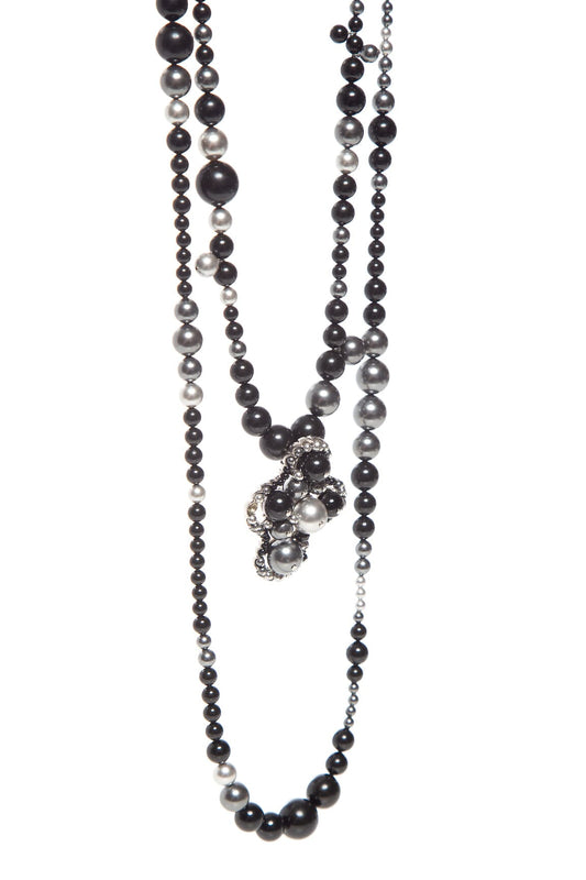 Chanel Black and Silver Faux Pearl CC Multistrand Necklace -AS IS