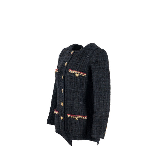 Chanel 21A Size 34 Jumpsuit Jacket Tweed Black/Burgundy/Gold