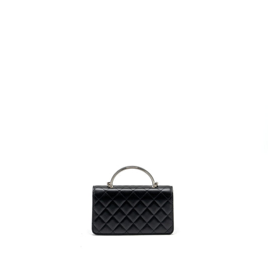 Chanel Top Handle Mini Wallet On Chain Flap Bag Lambskin Black SHW (Microchip)
