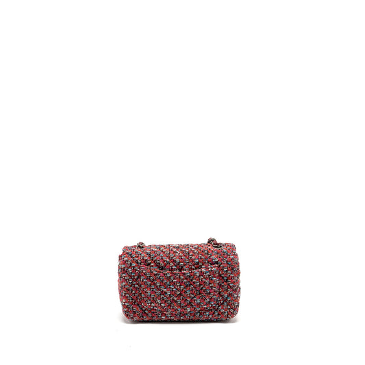 Chanel Mini Rectangular Flap Bag Tweed Multicolour Ruthenium Hardware(Microchip)