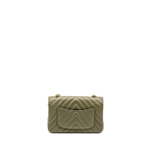 Chanel Chevron Mini Rectangular Flap Bag Calfskin Khaki GHW