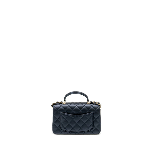 Chanel Top handle mini rectangular flap bag lambskin navy LGHW (microchip)