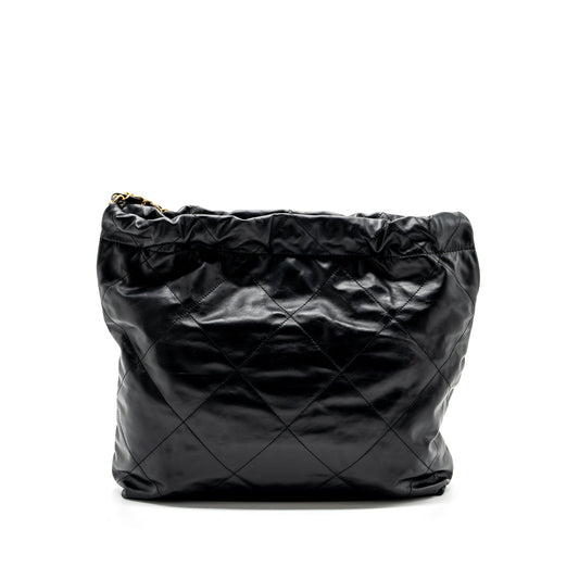 Chanel 22p Drawstring Bucket Bag Lambskin Black GHW (Microchip)