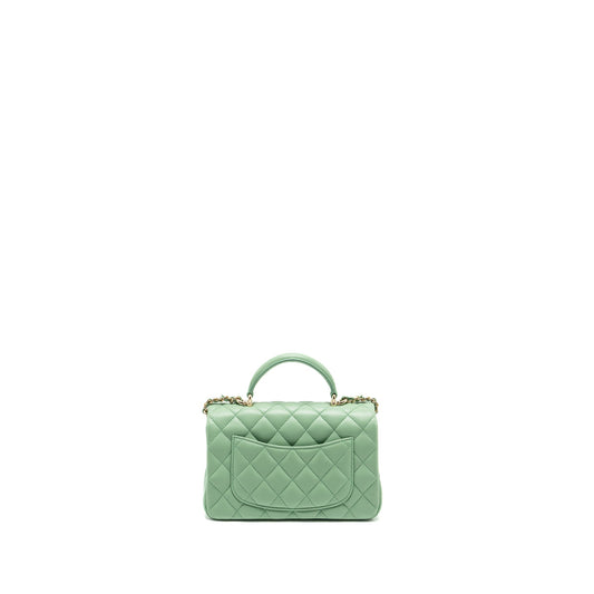 Chanel Top handle mini rectangular flap bag lambskin light green LGHW (microchip)