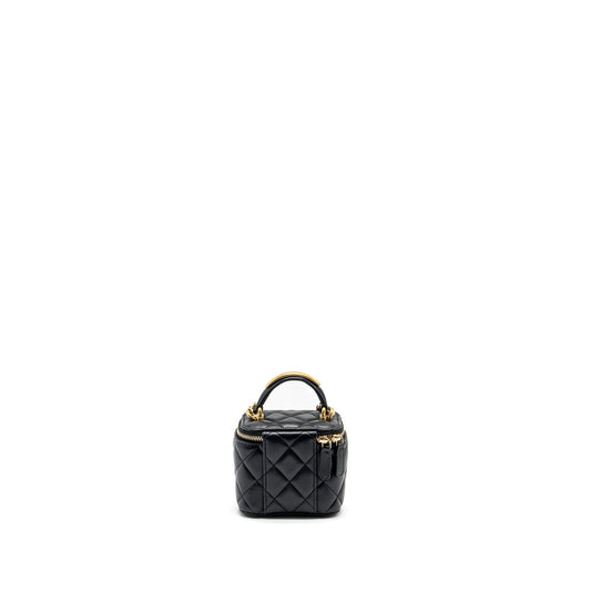 Chanel Top Handle Mini Vanity Case with Chain Lambskin Black GHW (Microchip)