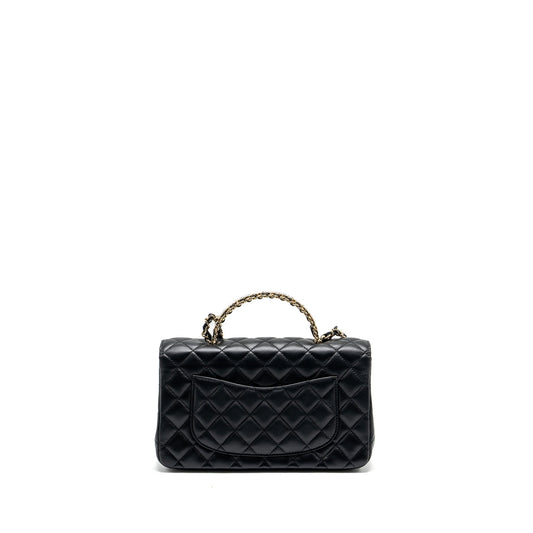 Chanel Crystal Detailed Top Handle Flap Bag Lambskin Black GHW (Microchip)
