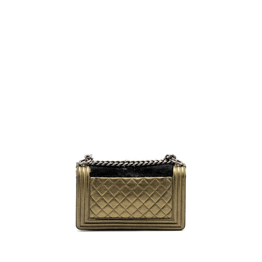 Chanel medium boy bag horsehair / calfskin black / gold ruthenium hardware