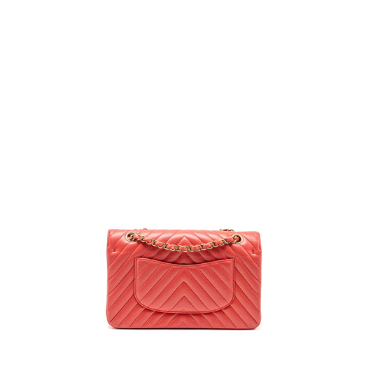 Chanel Medium Classic Double Flap Bag Chevron Lambskin Pink LGHW