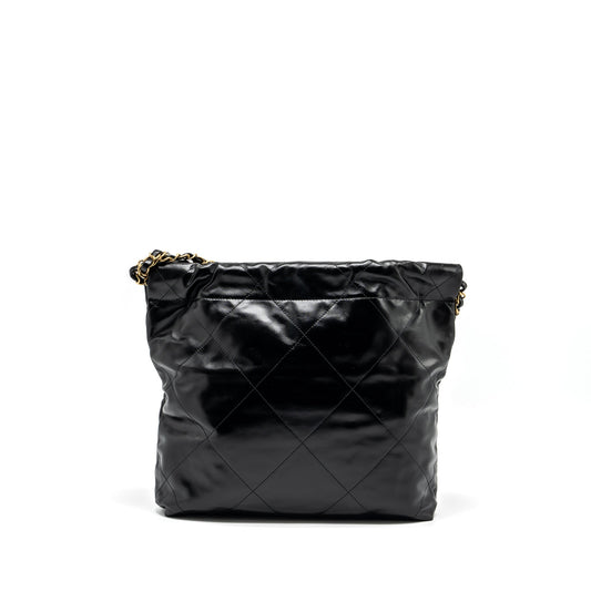 Chanel Small 22 Bag Gold Letter Shiny Calfskin Black GHW (Microchip)