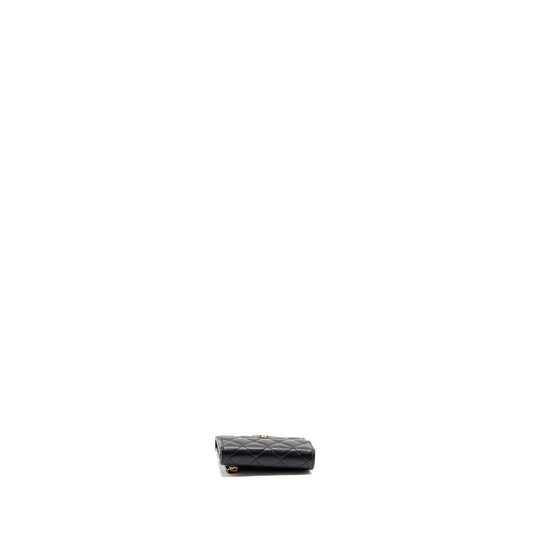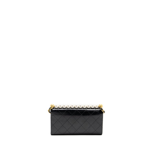 Chanel Quilted Pearl Long Wallet on Chain Goatskin Black GHW