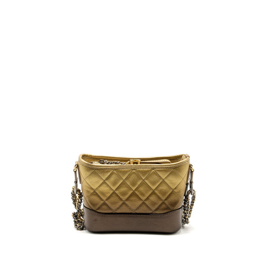 Chanel Small Gabrielle Hobo Bag Metallic Goatskin Dark Gold/Bronze with Multicolour Hardware