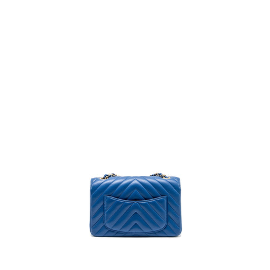 Chanel Mini Rectangular Flap Bag Chevron Lambskin Blue LGHW
