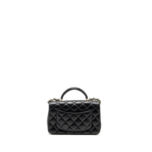 CHANEL Top Handle Mini Rectangular Flap Bag Lambskin Black LGHW (microchip)