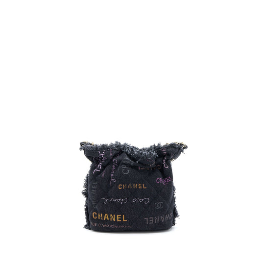 Chanel 22P Small Black Denim Bucket Bag GHW (Microchip)