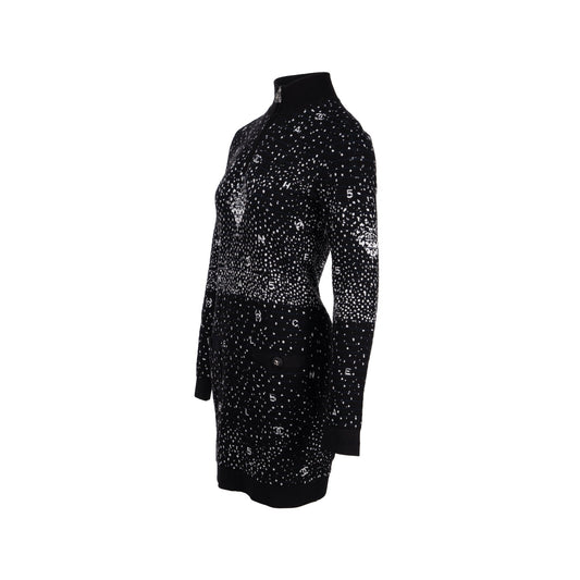 Chanel Size 38 20N Half Zip Dress Wool/Polyamide Black/White/Navy Blue