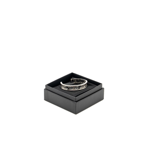 CHANEL CC Logo Cuff Bracelet Crystal Silver Tone