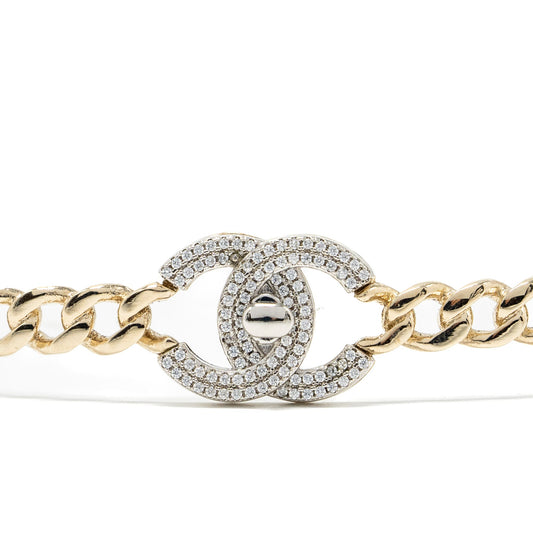 Chanel cc logo chain Chocker /necklace crystal light gold tone